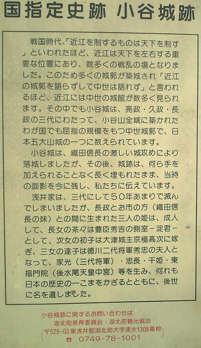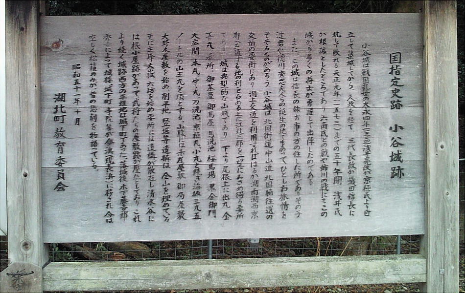 アクセス: JR 北陸本線河毛駅 湖北町タウンバス 小谷山線 バス 9 分 「小谷城址口」下車