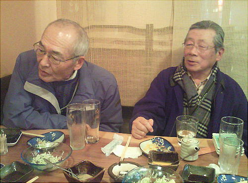 ここで携帯のバッテリーが切れてしまった。下は、何とか1枚だけ写せた反省会の模様。エラく高い店だった。