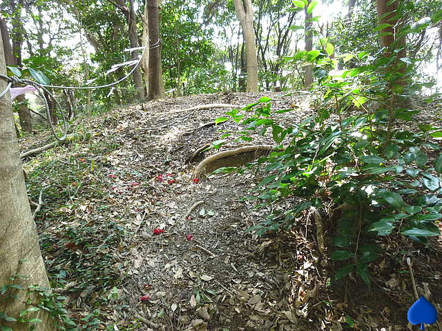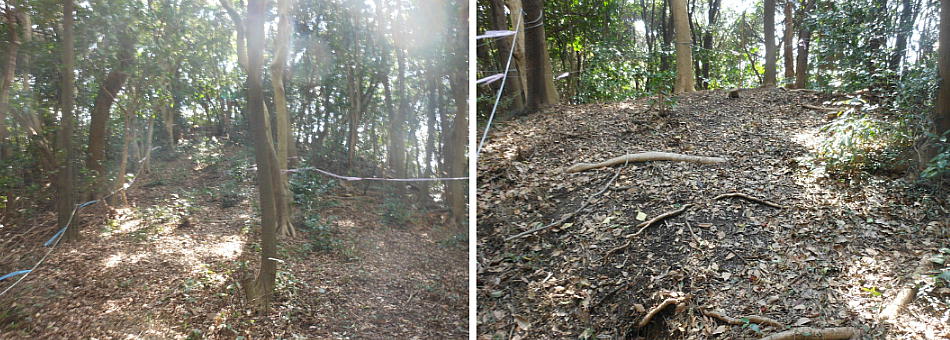 この古墳も尾根筋の先端部分を利用して築造された、経40〜50m、高さ5mの円憤と言うことになっているが、現状はとても古墳には