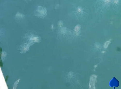 海の中にはクラゲの大群が。