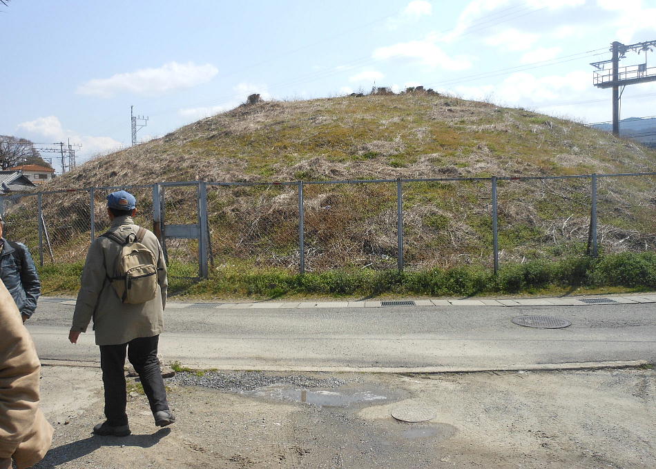 見えない。北西部に造りだしを持っていて、周濠を持っていた可能性もあるとのことだが、今の現場は材木置き場のようなただの空