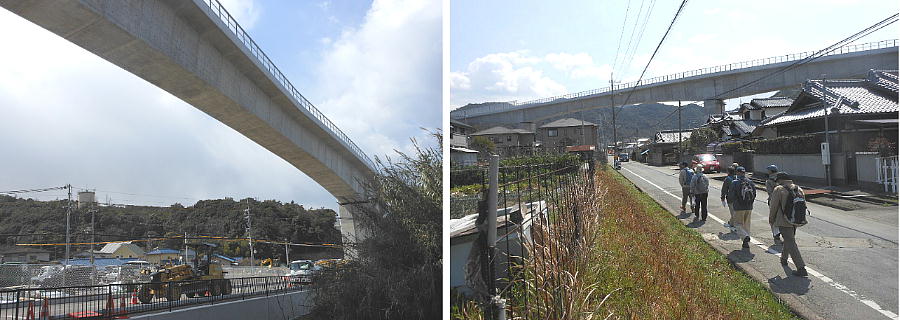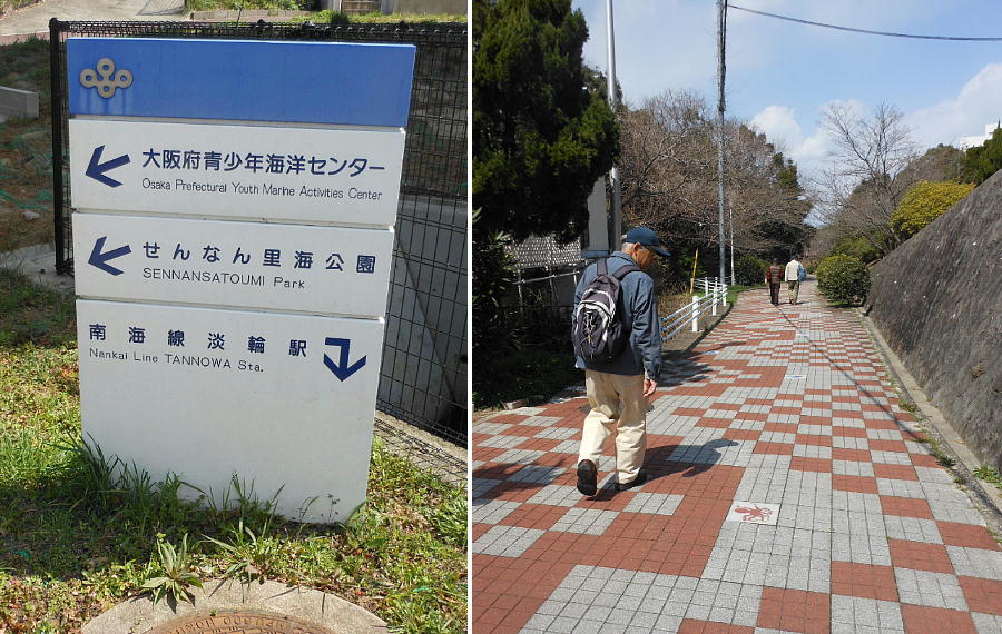 おじさんの案内で、線路を越えて淡輪ヨットハーバー方面へ歩く。陸橋の下が淡輪駅である。