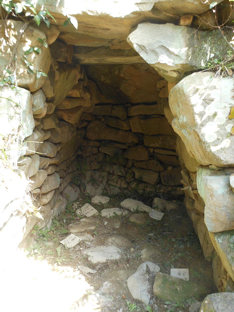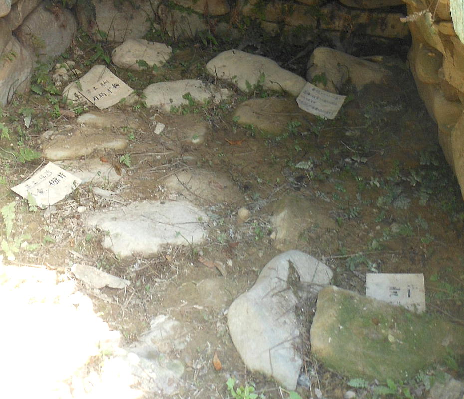 斜し、石室底面には河原石の厚いものを敷き、天井には花崗岩の扁平な6枚の大石を乗せている。