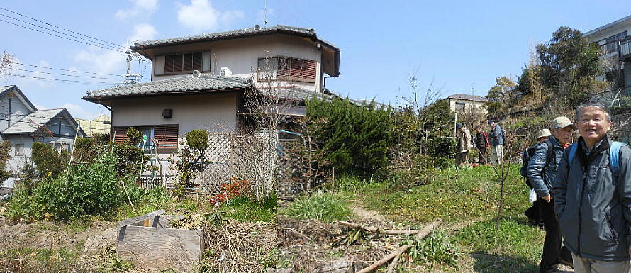 上左から二人目のおじさんが、この古墳の持ち主、というかおじさんの家の敷地内にあるのだ。周りの畑もおじさんのもの。
