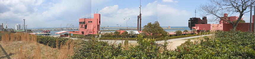 前に見えている建物は船では無い。「何とかセンター」だったが、船の形に作ってあるのだ。ホント建築家ってエライねぇ。