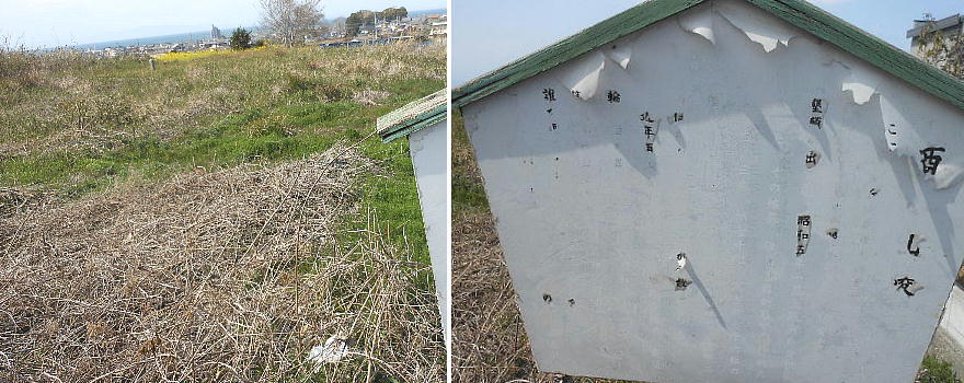 説明板ももうボロボロ。ほんまに「郷土の文化財」と思っとるんかねぇ。