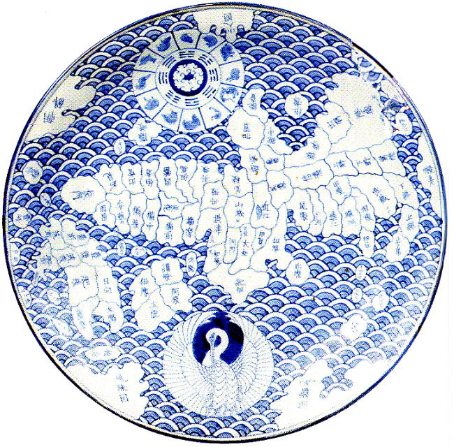 に飾ってあった伊万里焼の日本地図大皿。たくさん焼かれたらしいので、もちろん店のものも本物だろう。写真は神戸市博物館所
