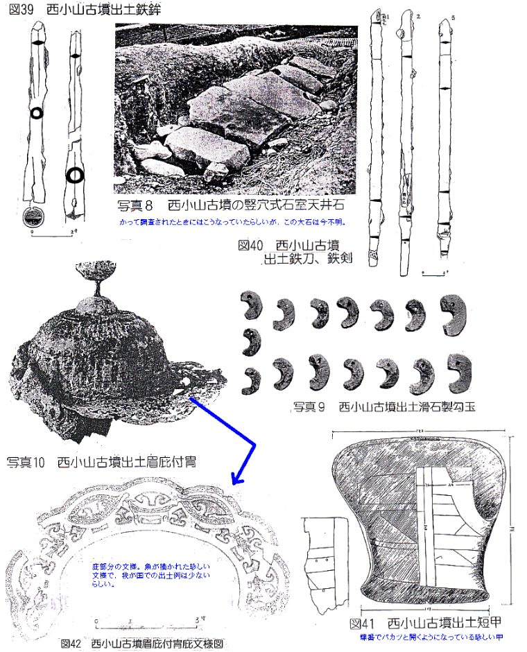 定されている。またこの2つ古墳のほぽ中央に、直径約40mを越える大きな円墳の西小山古墳があり、様々な鉄製の武器や勾玉