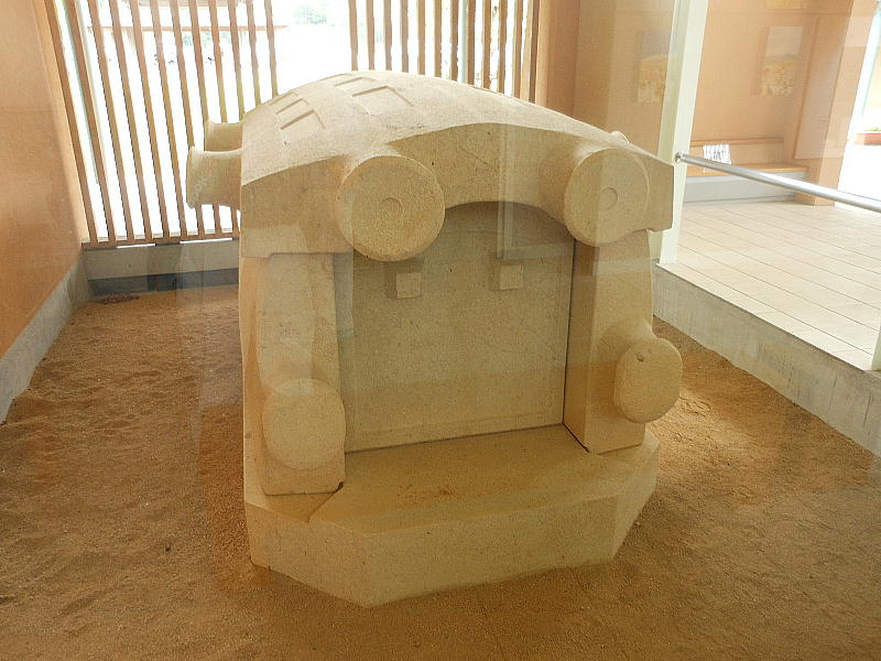長持形石棺 朝来市内に存在する石棺の一部から推定される長持形石棺を復元。実物と同じ竜山石を用い、忠実に再現している。