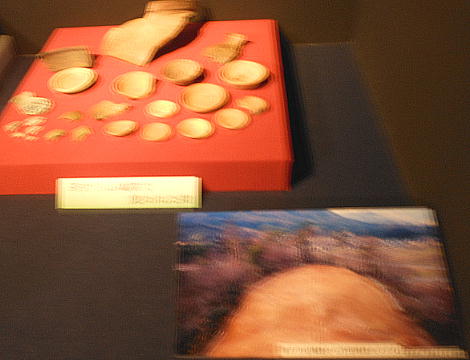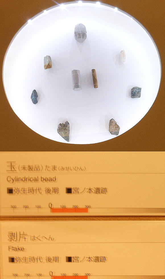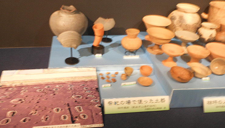 てたり、本物の土器のかけらをさわることもできる。環濠をめぐらせた弥生時代の高地性遺跡「大盛山遺跡」のジオラマもある。