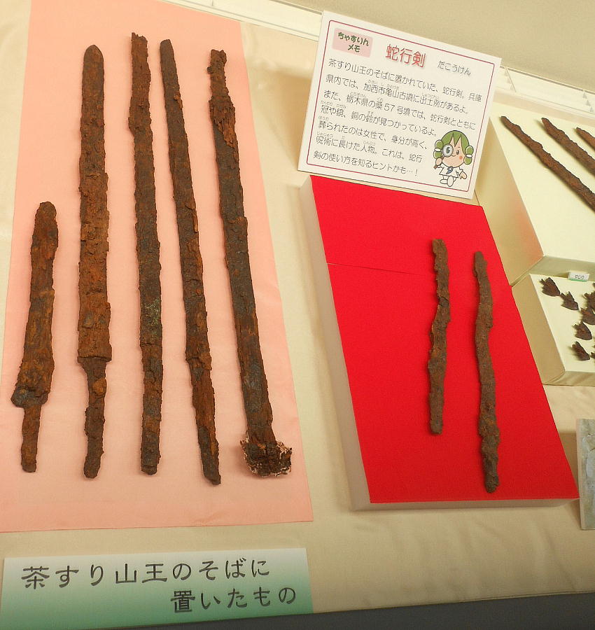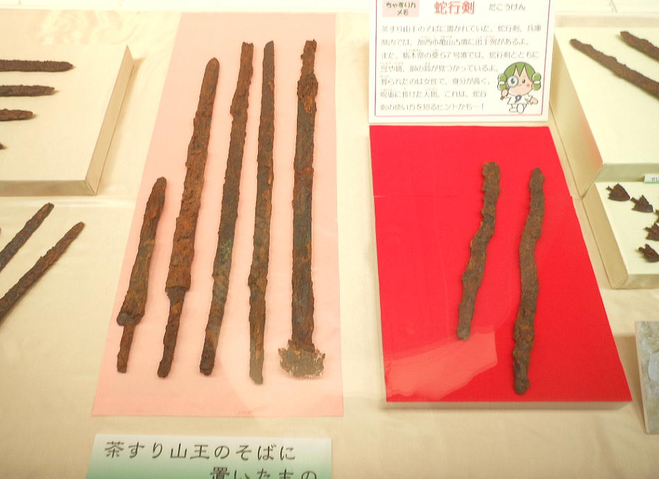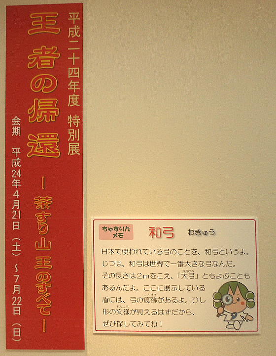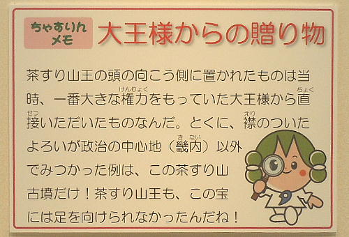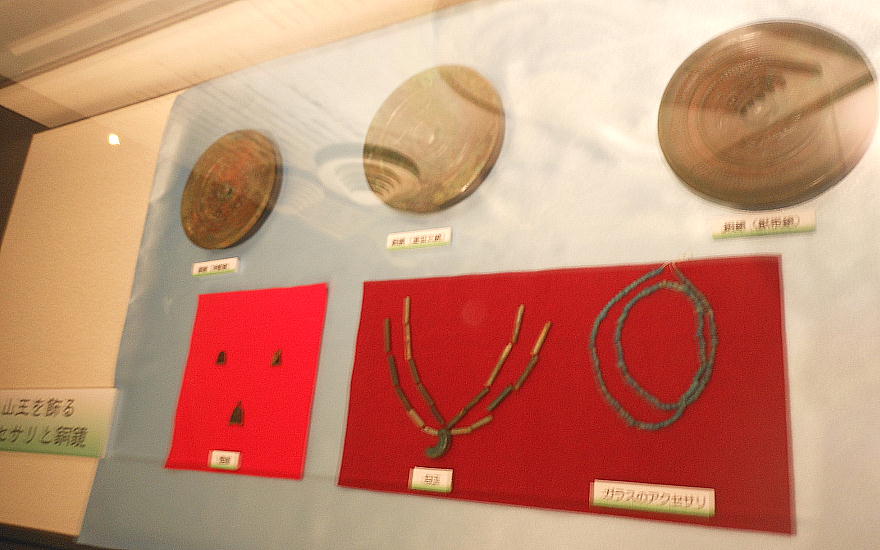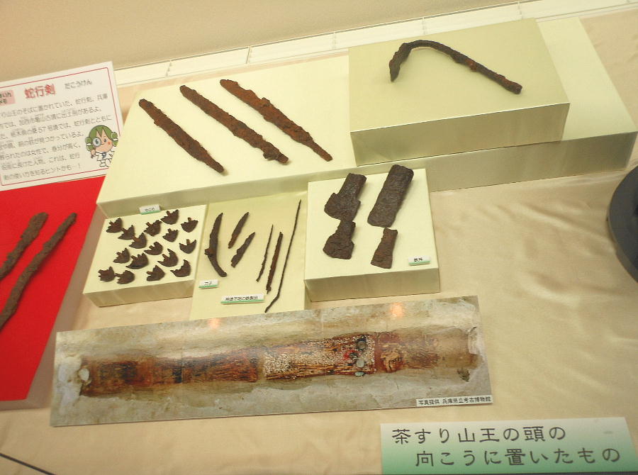 史跡の茶すり山古墳や国の重要文化財である城ノ山古墳の出土遺物等、朝来市域に存在する大型古墳から出土した遺物を中心に展示し