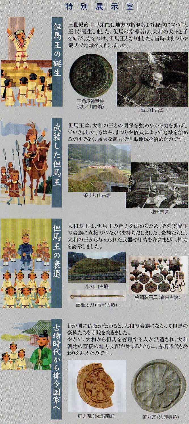 ーダーが出現したことやまつりの形の変遷から但馬の王が誕生するまでの過程をたどる。パズルや模型で遊びながら古代体験できるハ