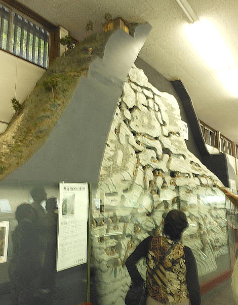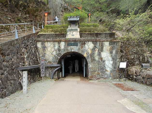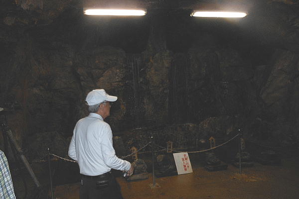 坑道の中に水の流れる滝が造ってあって、その横に神棚がある。作業の平穏無事を祈願したものだろう。私も娘の獣医国家試験の直前