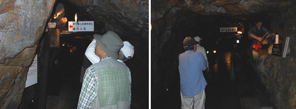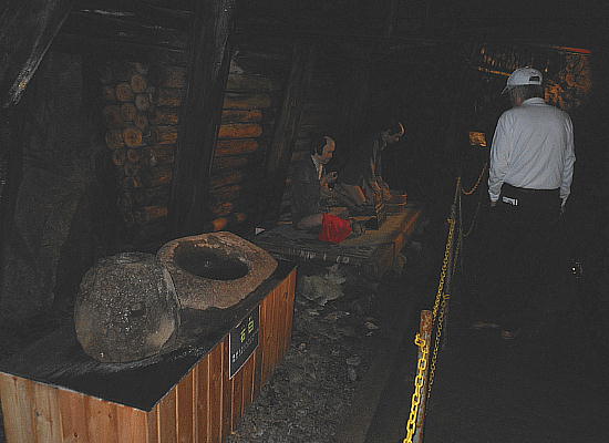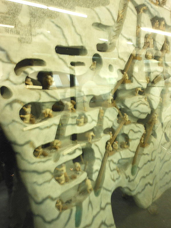 坑道内には、アチコチに蝋人形や説明板や設備の復元があって、非常に理解の手助けになる。