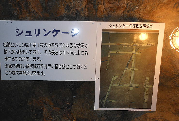 観光用に整備された坑道だけが、一般公開されている。この上にも坑道があるが狭い。