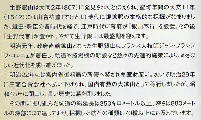 「生野」にするよう言ったと言う話も伝わる。生野に鉱山がなければ人は住まなかっただろうとさえいわれ、鉱山とともに栄えた町な