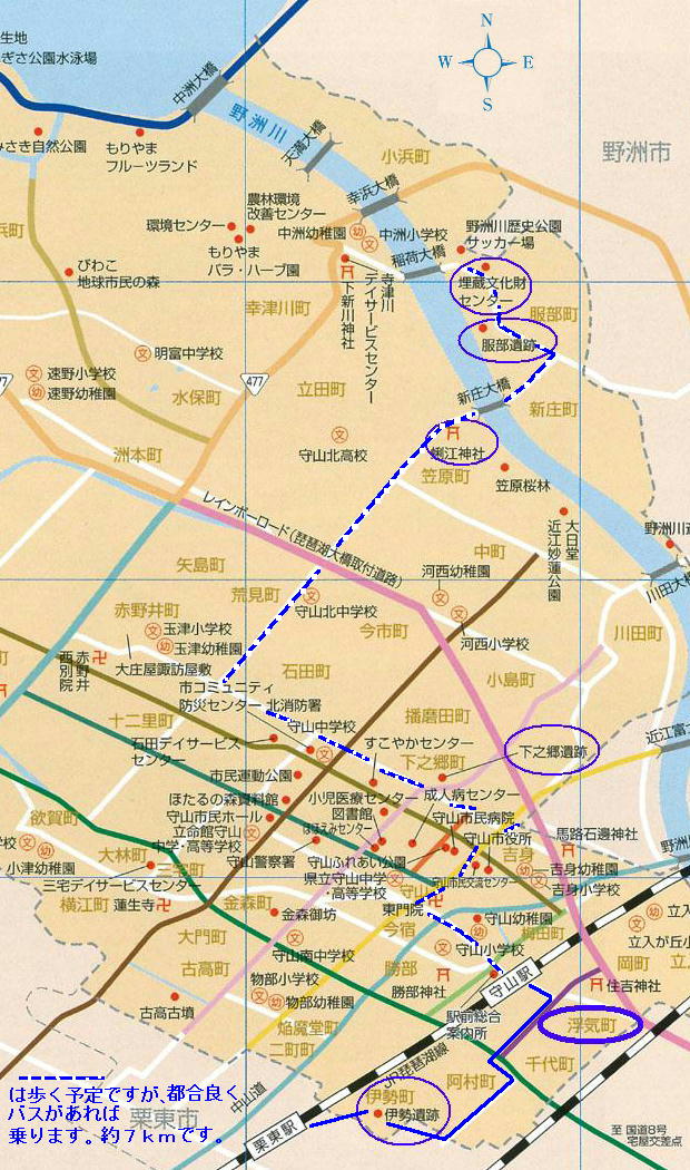 − 服部遺跡 −(徒歩)− 下之郷遺跡 − 伊勢遺跡(看板があるかないか?)−JR守山駅(16:00頃?)