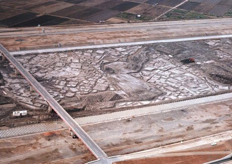 査では、延べ5万人の人員を投入して4層30万m2以上の面積を調査し、縄文時代から平安時代にわたる数々の遺構や、100万点にも及ぶ膨