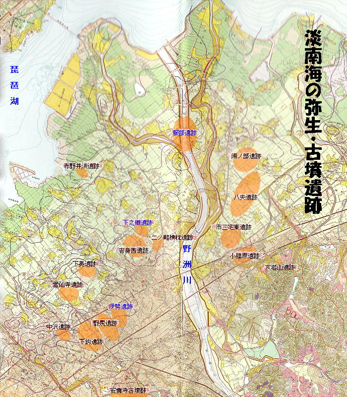 の益須寺(推定)などがあります。ここでは野洲川の水の恵みをたよりに稲作を開始した弥生時代の遺跡をみてみます。