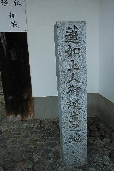 活動を拡大した。文明13(1481)年山科に本願寺を再建。大坂石山に隠居するが,山科本願寺で没した。ここの石標は蓮如の誕生地を示