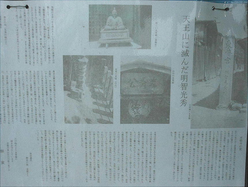 れ塚が築かれた。後世、光秀の子孫と名のる明田氏が、その塚にあった石塔を自宅(現在地の東)へ移して祀ったのがはじまりという。