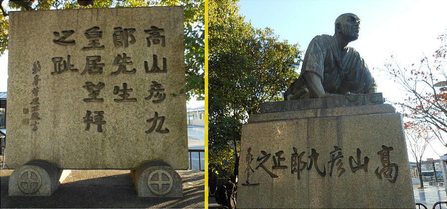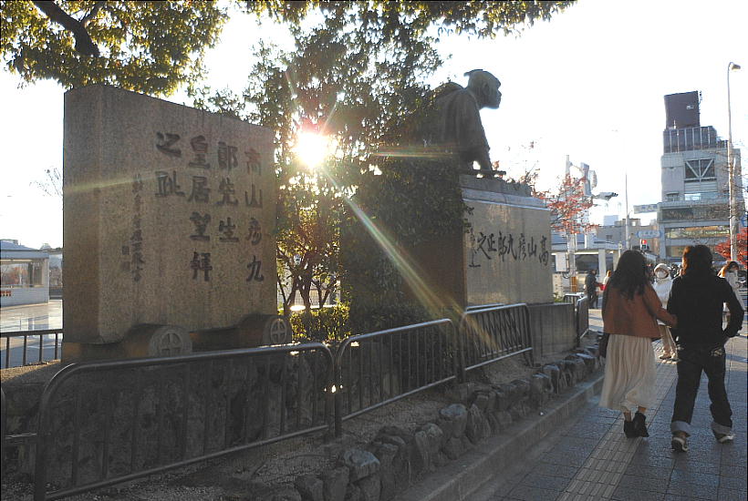 いて遙拝したそうである。その故事でここに像が立っている。伊藤五百亀 作 。上州新田郡の「木枯紋次郎」と同じ生地である。