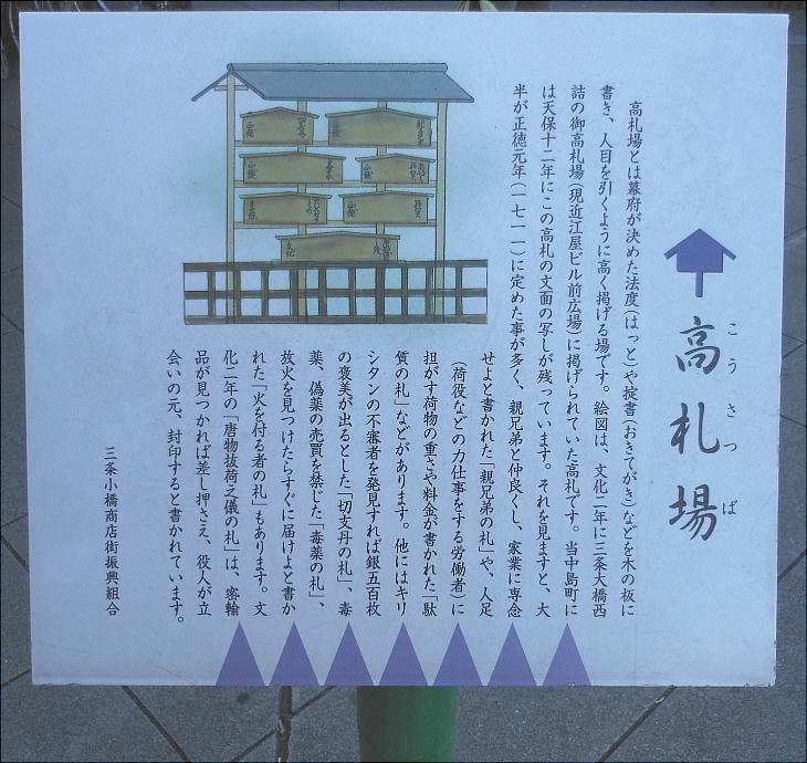 皆さんが見ている「高札場の跡」には、私が大阪へ来た時には「近江屋」という旅館が建っていた。(龍馬が暗殺された近江屋ではない。)