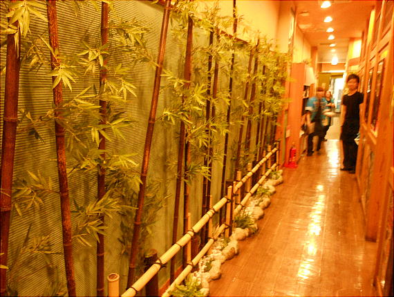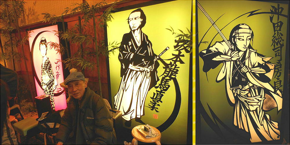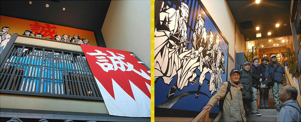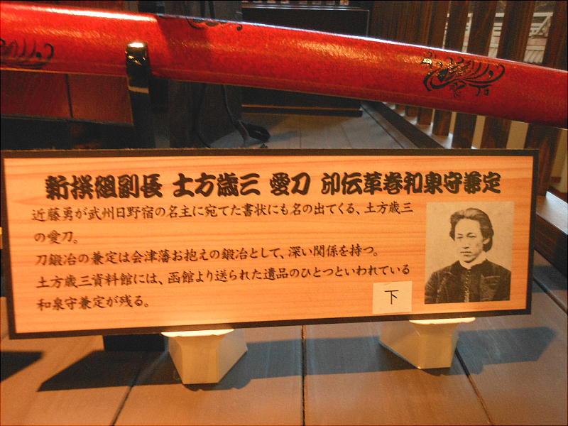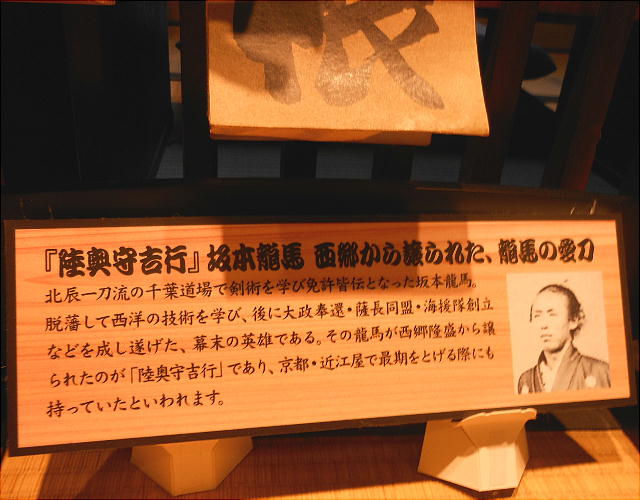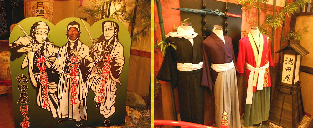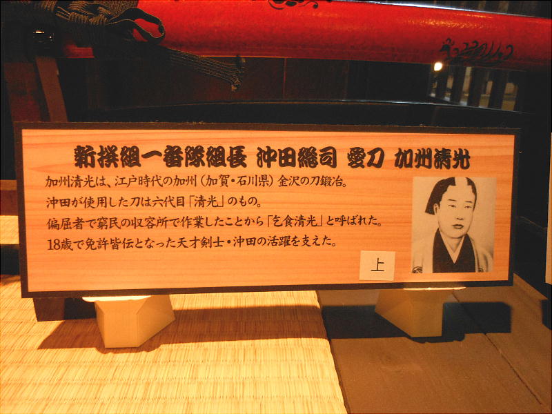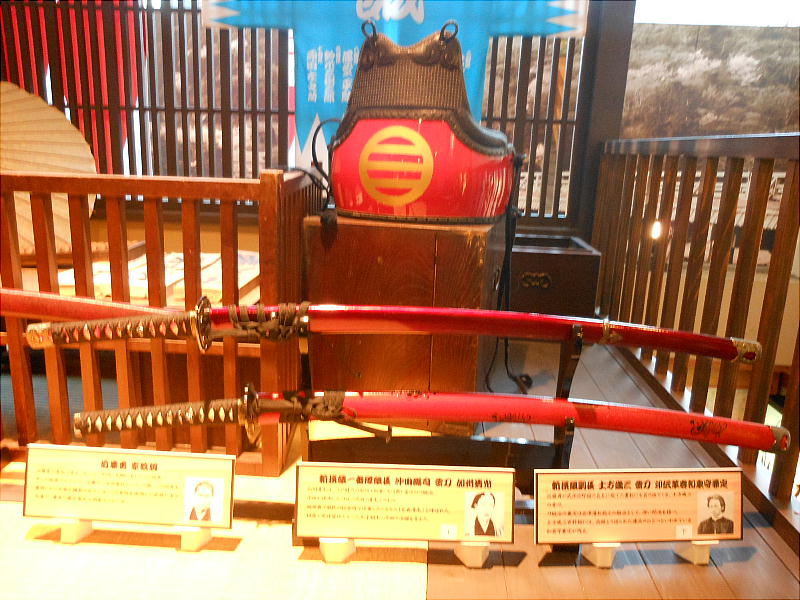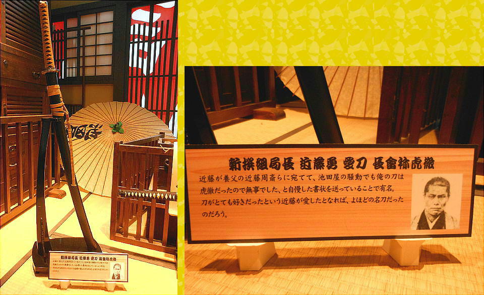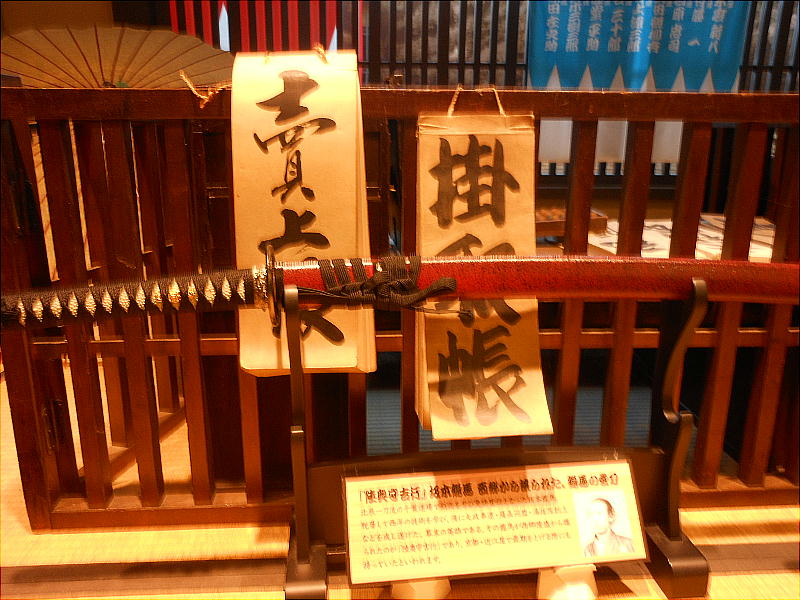 予約はしていたのだが、部屋の準備が整うまでここで待たされる。近藤勇の刀などのレプリカが並べてあって、幕末の雰囲気を出している.