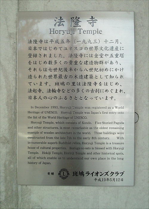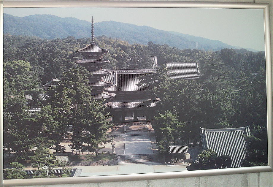 上下は、駅の階段の壁に掛かっていた法隆寺の説明