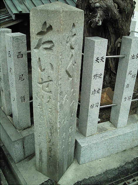登っていくのだった。作業中のおじさんに断って、葡萄畑(梨畑だったかな)を登り切るとすぐの所にあった。疲れたおじさん達は、