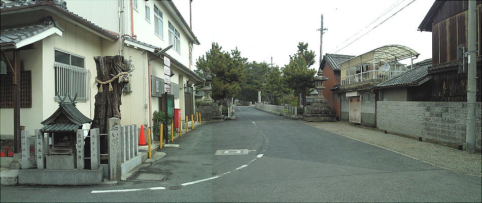 上左写真の手前に小さな祠があるが、どうやら昔はここに神社が在ったもののようだ。今は祠と道しるべを残すのみ。