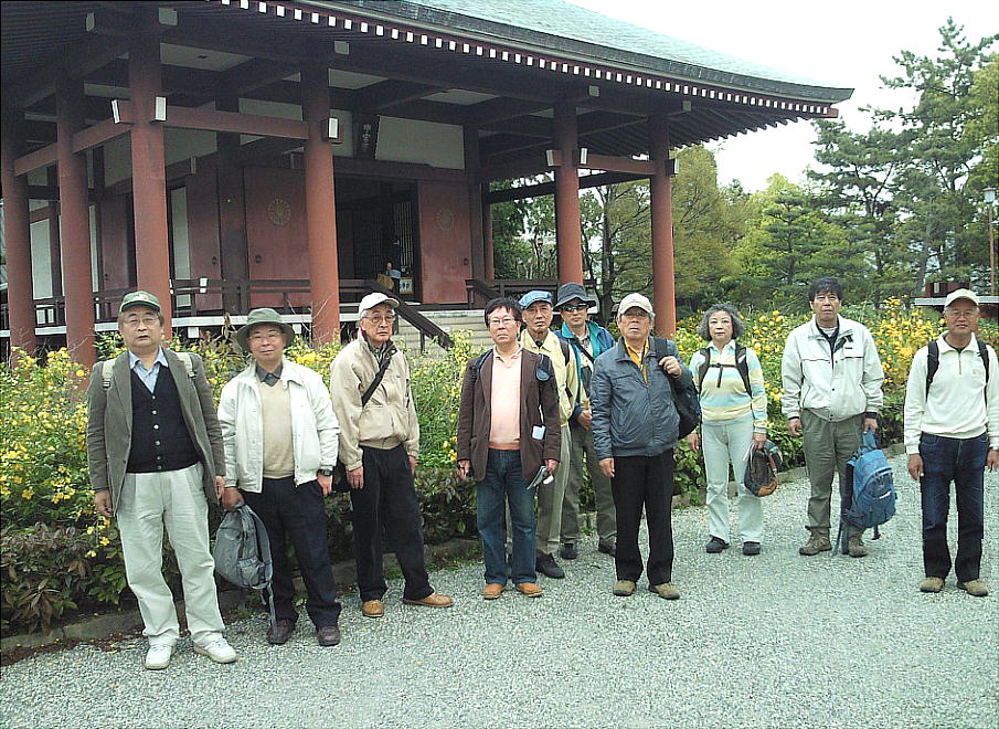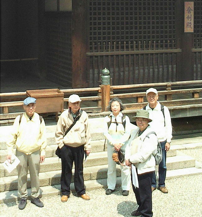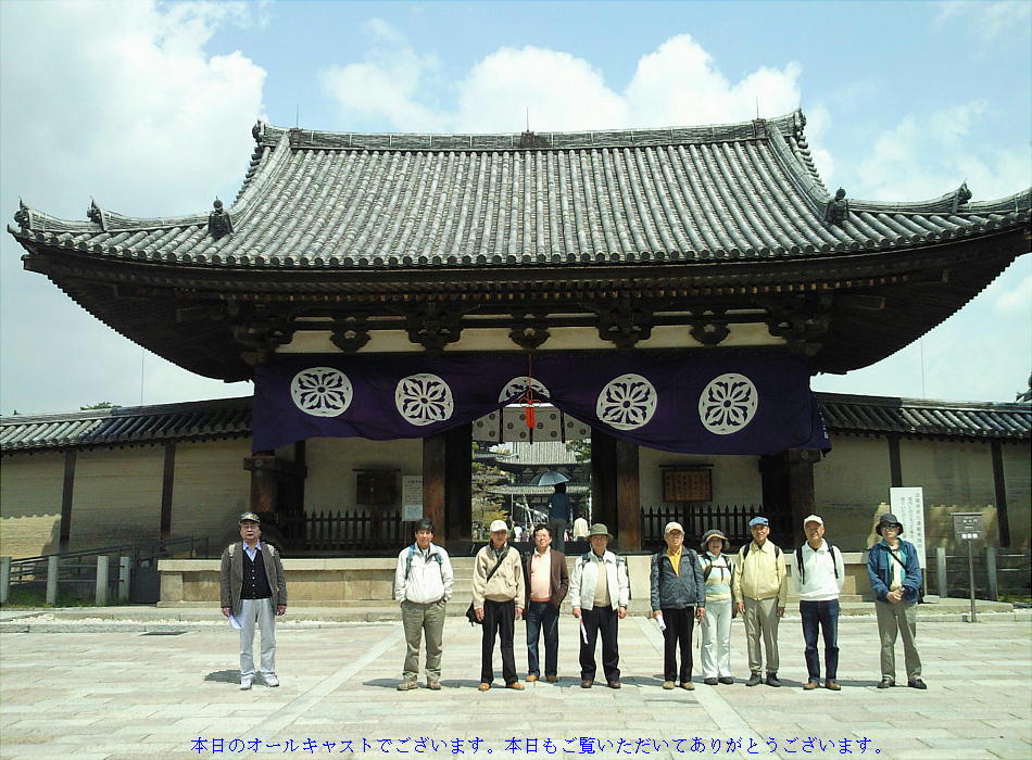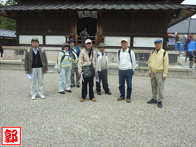 先へ行った私と、法隆寺の駐車場で待っている松田さんと、この写真を撮っている郭公さんを除く7人のサムライ。