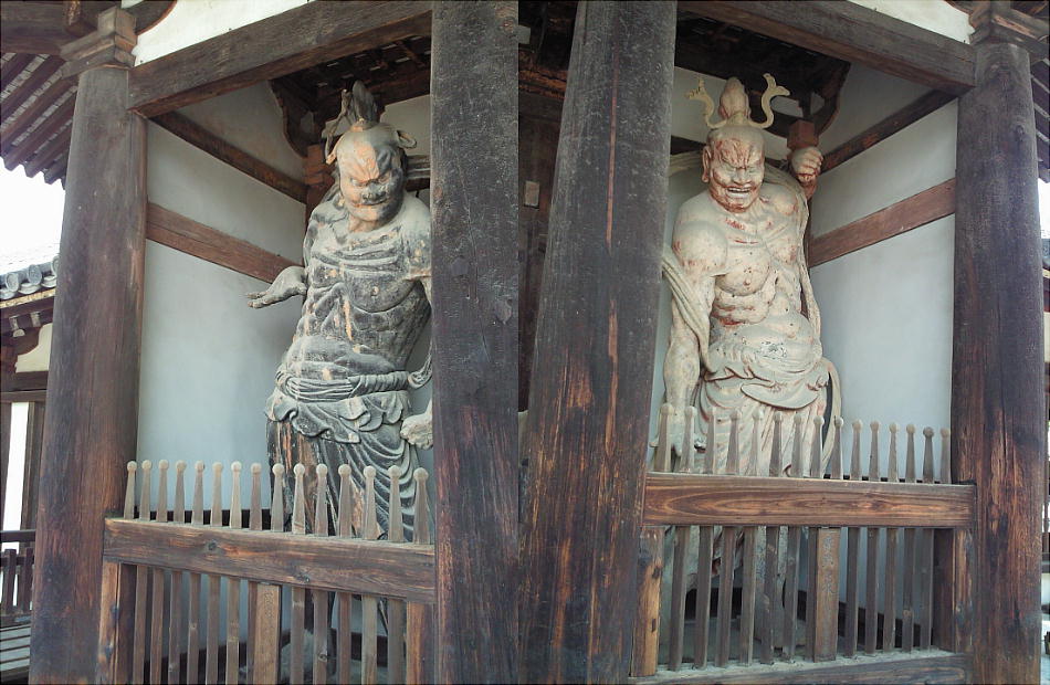 中門の両脇に立つ、阿吽(あうん)の「金剛力士像」。塑像。重要文化財。
