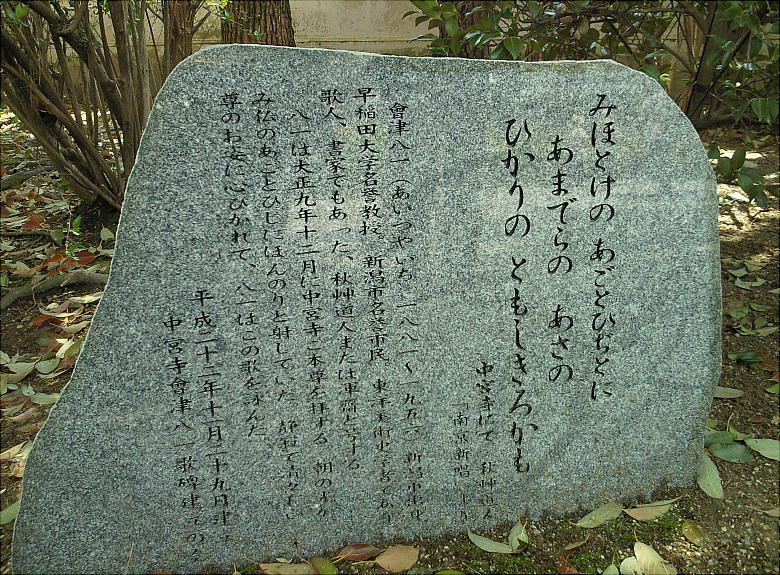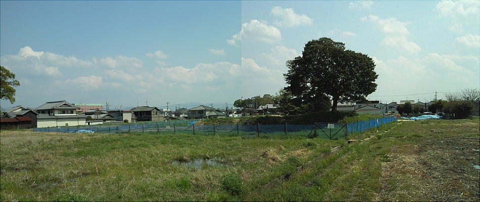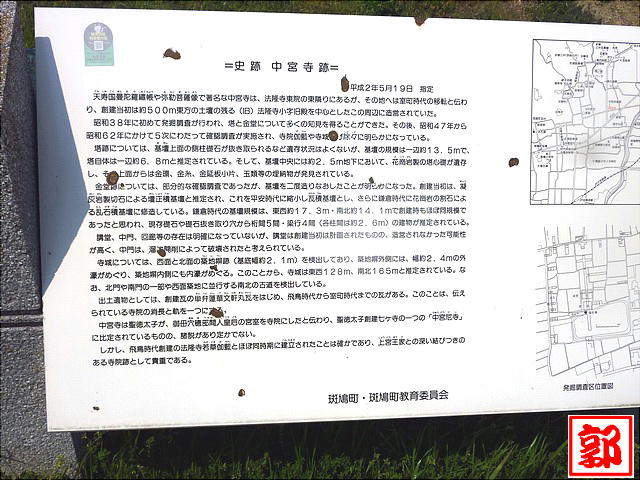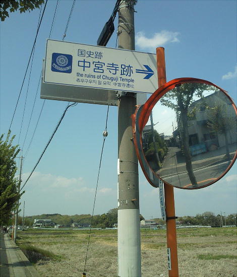 法起寺から南へでて溜め池の横を通り、県道9号線に沿って田圃の中を南下すると、5,6分で中宮寺跡が左手にある。中宮寺は元々ここにあった。