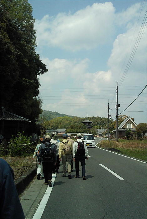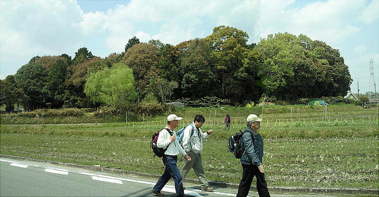 中宮寺宮墓の森をバックに法輪寺を目指して歩いていると、