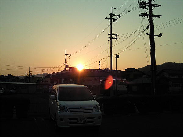 斑鳩の里に沈む夕陽。ここで解散。ここからバスでそれぞれの方向へ。皆さん、お疲れ様でした。西本さん、次回よろしく。