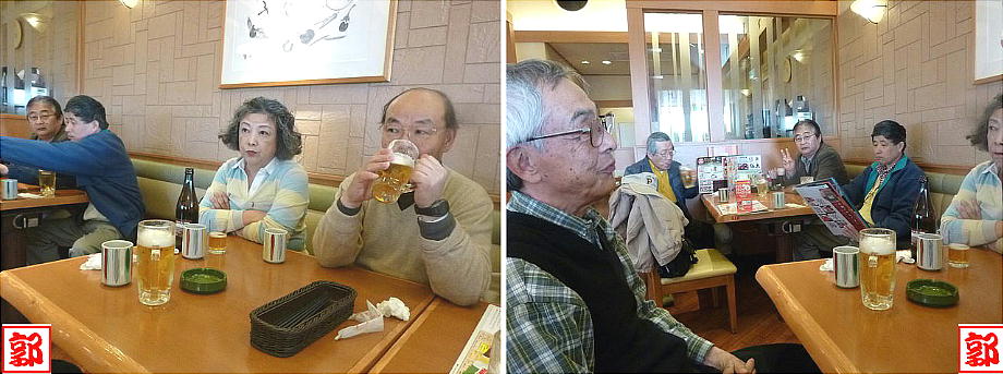 法隆寺前のバス・ターミナル横にあったファミレスで反省会。終了時間が早かったので、探しても多分飲み屋さんは開いてなかっただろう。