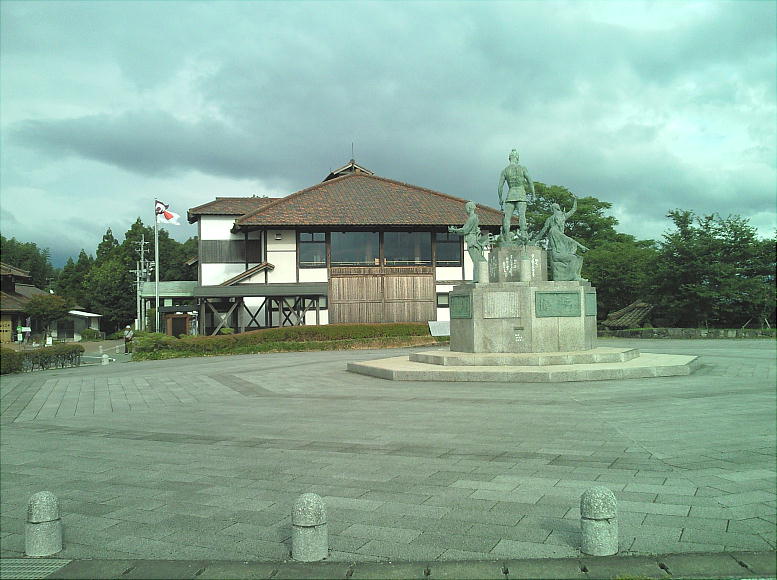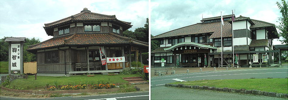 いる。上左は当地の物産品や土産物を売っている「長者館」で、上右はこの歴史公園の資料館である「温故創生館」である。まずこ