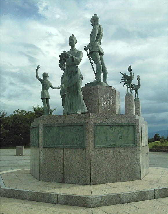 古代をしのぶ鞠智城のシンボル 「鞠智城温故創生之碑」