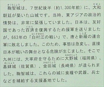 鞠智城の件、先日訪問の際におさえておいた資料(写真3点)を添付いたします。私からのひとつ前のメールで、