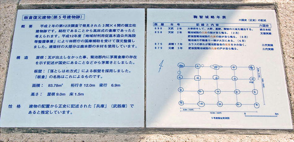 (福岡県)、基肄城【きいじょう】(佐賀県)、金田城(長崎県対馬)が造られ、ここ鞠智城はこれらの城への食料、武器、兵士の