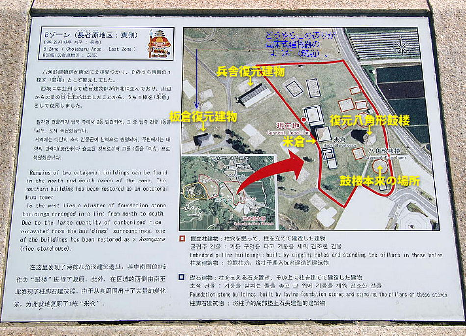 陪冢姉妹さんによれば<高床式倉庫跡>はこのあたり(上)にあったもののようだ。区分されている所がそうかもしれない。或いは下かな?