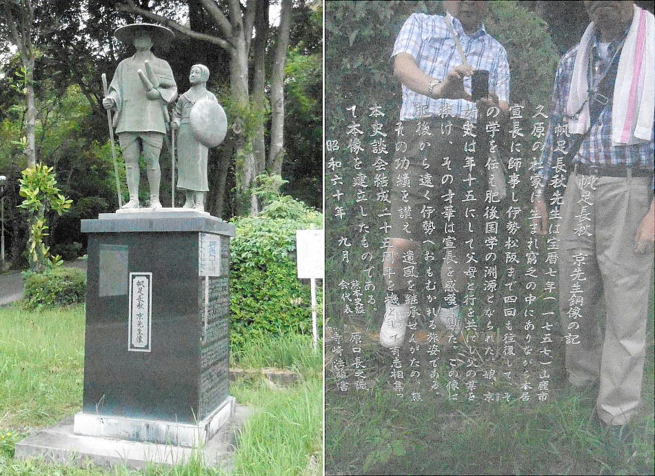 唯一現存している全巻揃いの古事記伝写本となっている。熊本博物館前には、旅立つ帆足長秋・京父娘の像がたっている。
