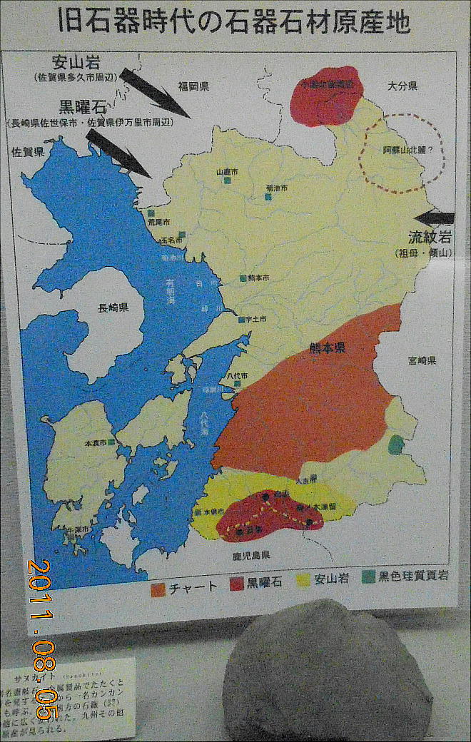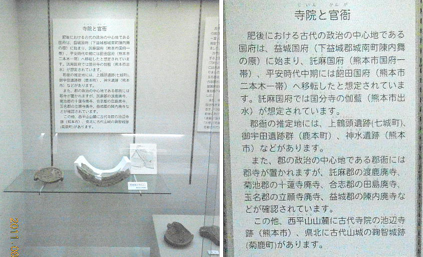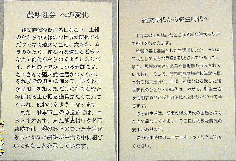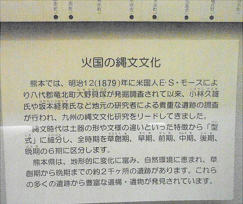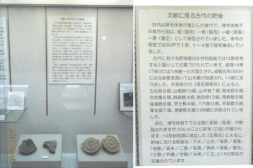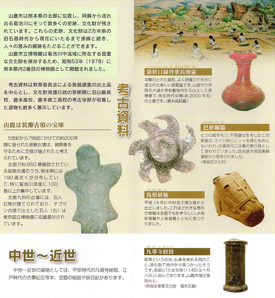 平方メートルの小さな博物館だ。山鹿市を中心とした菊池川流域の考古資料のほか、歴史資料や民俗資料が展示されている。また
