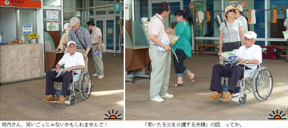 吉野ヶ里遺跡は広大なので、足が悪い服部さんには無理矢理車いすに乗って貰う事にしました。