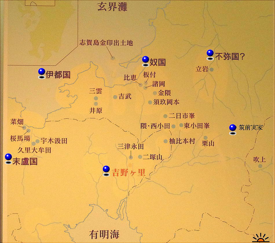 有明海は吉野ヶ里丘陵の南端付近まで広がり、遺跡から2-3キロメートルほどの距離にあったと推定されている。