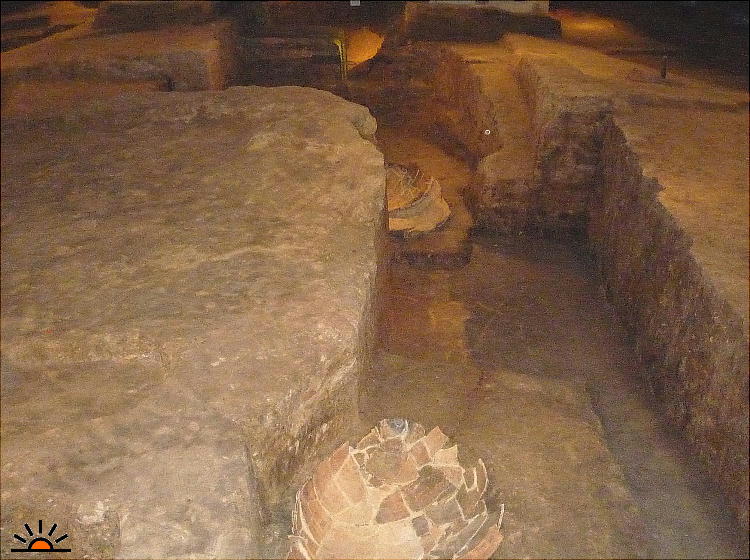 多数の遺体がまとまって埋葬された甕棺、石棺、土坑墓は、住民や兵士などの一般の人の共同墓地だと考えられている。一方、遺跡の南