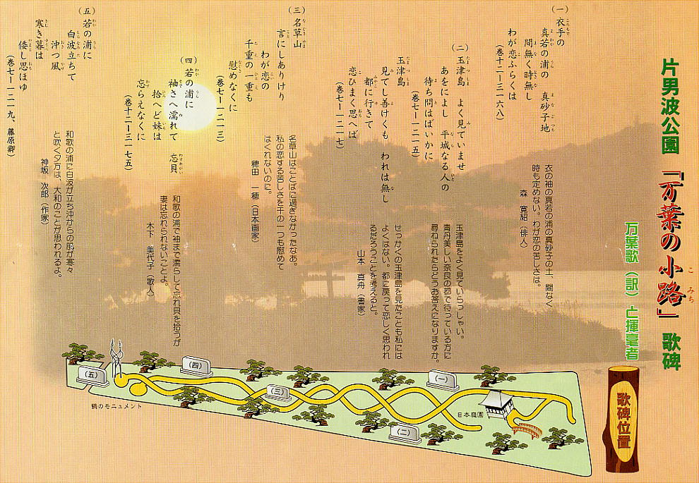 片男波公園にある、万葉集の資料館。和歌浦を中心に、県内で詠まれた万葉歌やその背景、風土などをパネルで展示・解説。館内中央