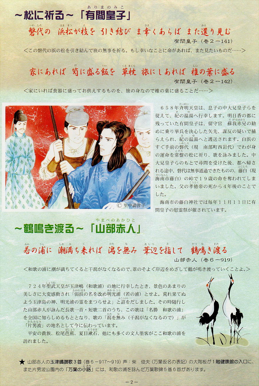 もう一つのテーマは、山部赤人の「若の浦に 潮みちくれば 潟をなみ 葦辺をさして たづ鳴き渡る」の歌で有名な、聖武天皇の紀伊行