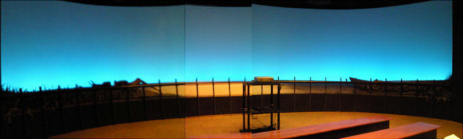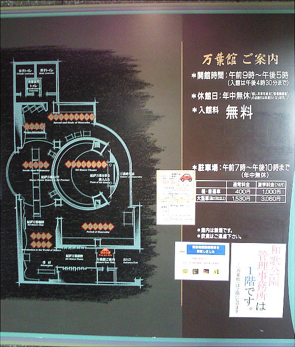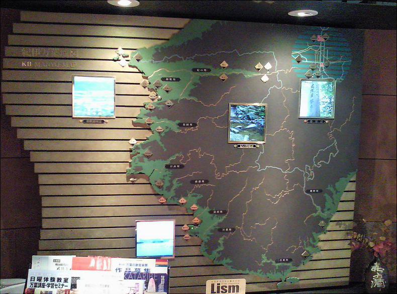 にある円形の壁に、きのくにわかやまに関連する歌 107首を、奈良の都から新宮市まで「歌地図」で表している。紀伊万葉シアターで